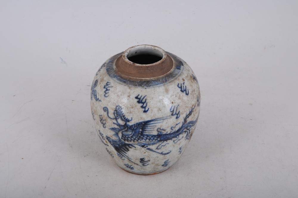 清灰釉青花(huā)龍鳳牡丹紋雙獅耳瓶