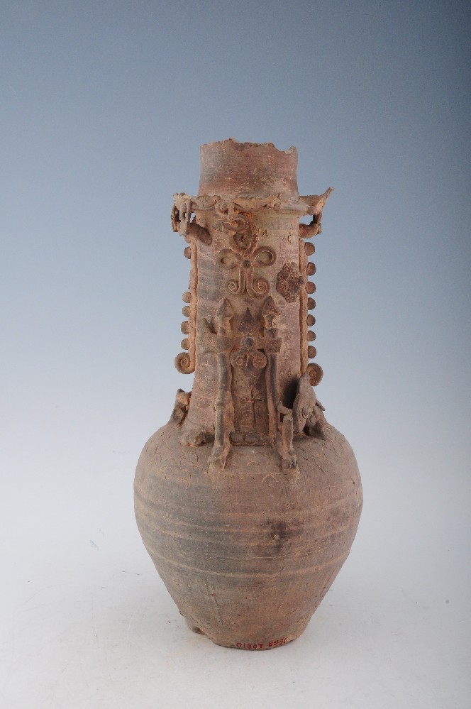 清灰釉青花(huā)龍鳳牡丹紋雙獅耳瓶