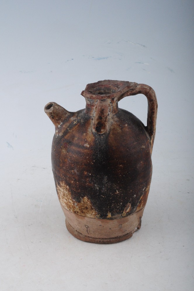 五代青褐釉雙系把壺