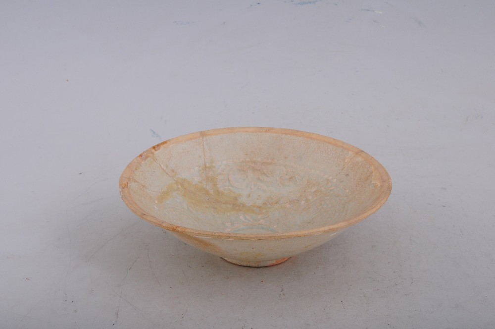 元青白(bái)釉刻劃蓮瓣花(huā)卉紋圈足碗