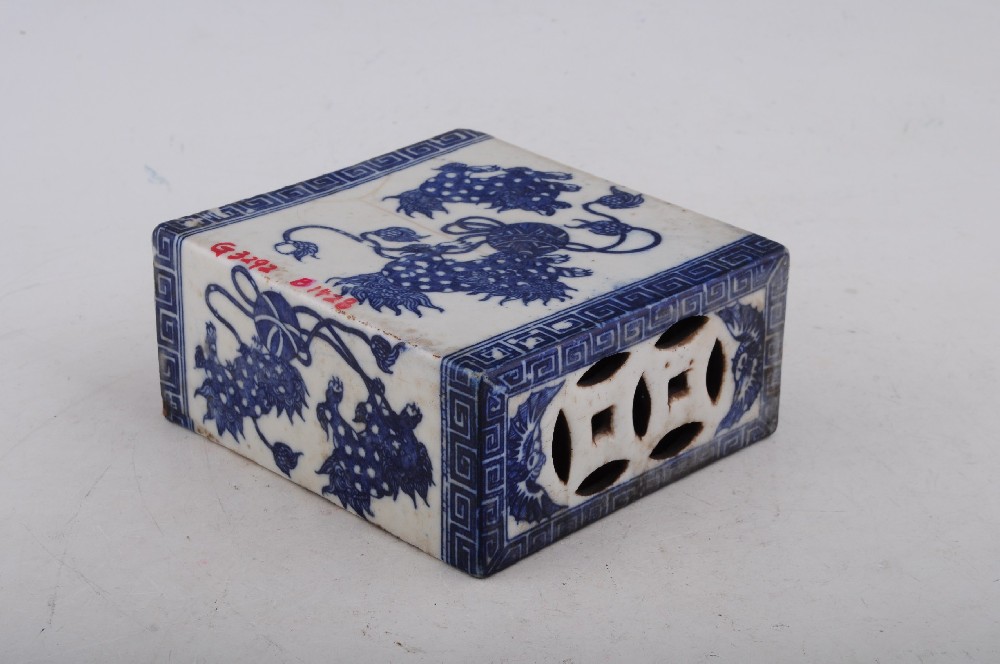 清青花(huā)雙獅紋方形枕