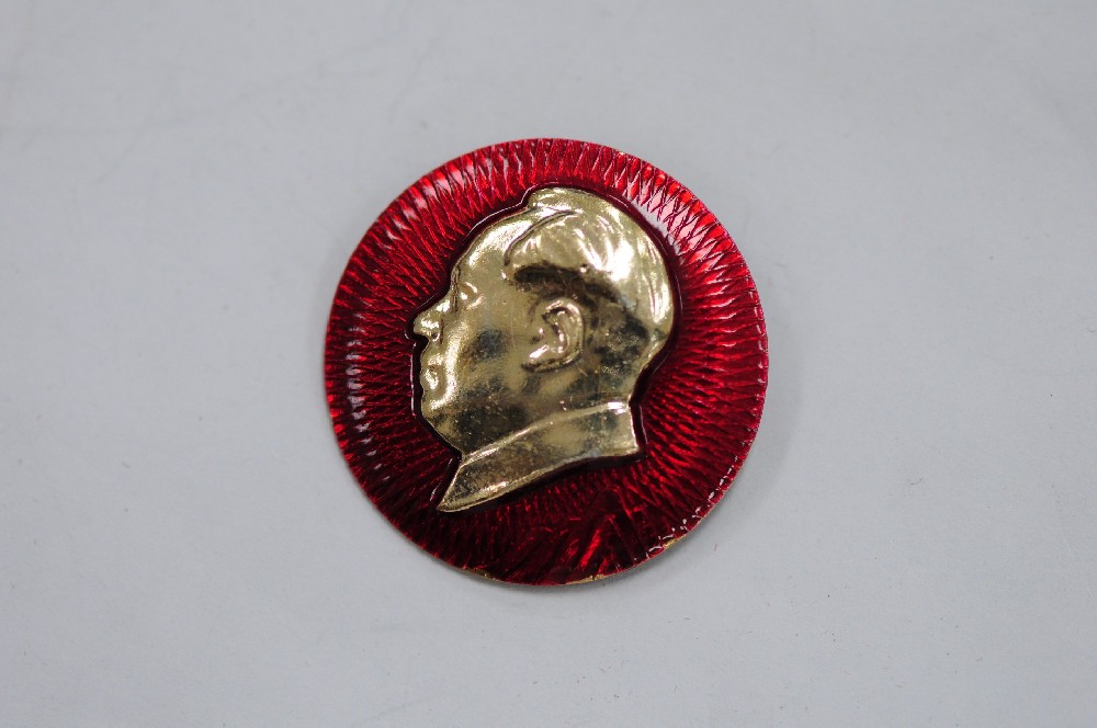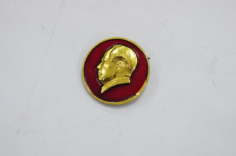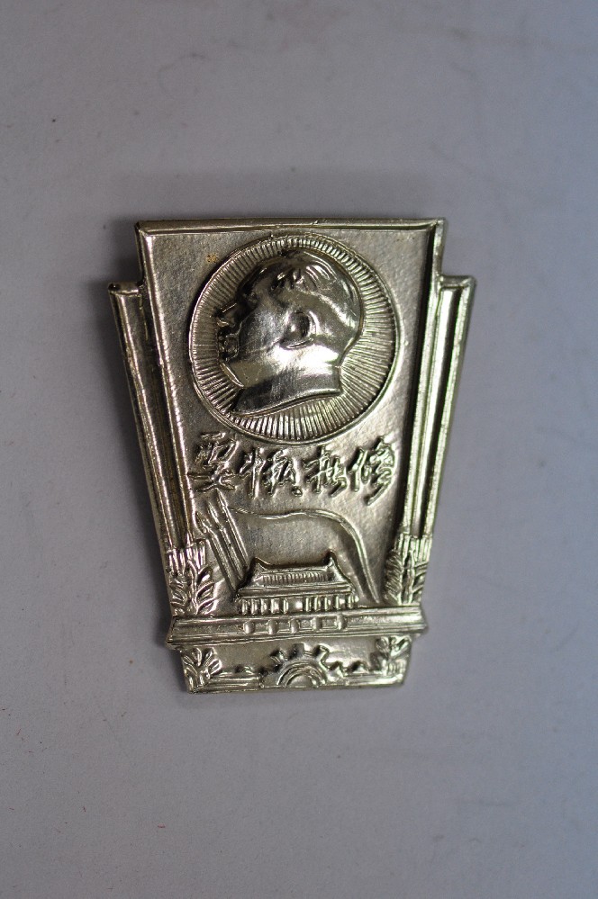 現(xiàn)代文(wén)化(huà)大(dà)革命時(s ♥hí)期金(jīn)黃(huáng)色毛主席鋁像'♣章(zhāng)