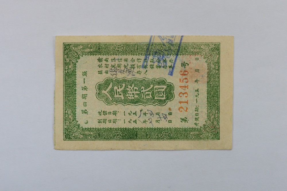 20世紀50年(nián)代贛南(nán)區(qū)信用(yòng)合作(zuò)社農(nóng)§'↔↔村(cūn)定期定額儲蓄伍圓存單