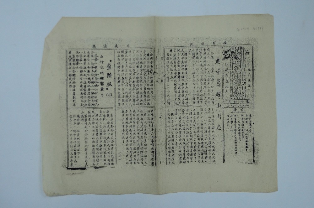 1933年(nián)中國(guó)共産黨江西(xī)省委出版的(de)《省委通(tōng)∏♥↕δ訊》(第12期)