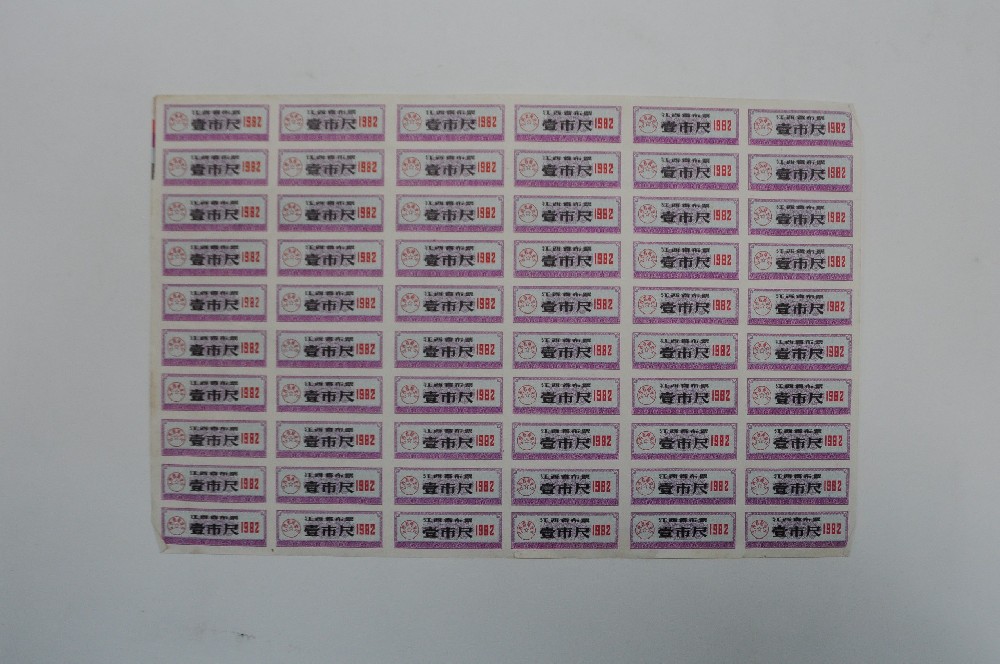1982年(nián)江西(xī)省壹市(shì↓₹")尺六十連張布票(piào)